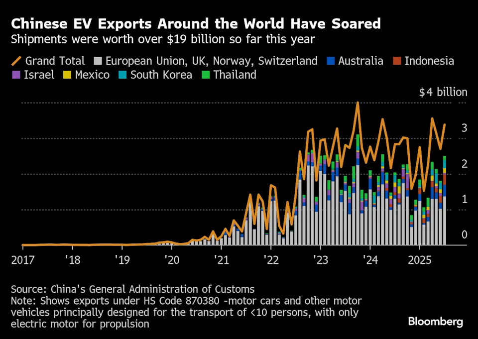 For all the consternation around the world, the glut of goods cascading from China won’t be easy to stop. Chinese electric car exports have continued to power ahead despite steps by the US and Canada to curb them with punitive tariffs and bans.